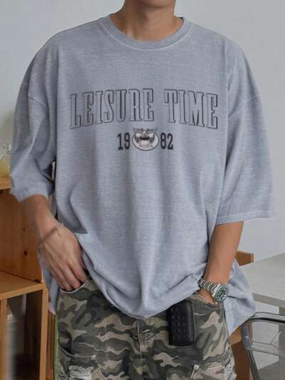夏用 メンズ 半袖 ラウンドネック Tシャツ グラフィックプリント グレー-39%