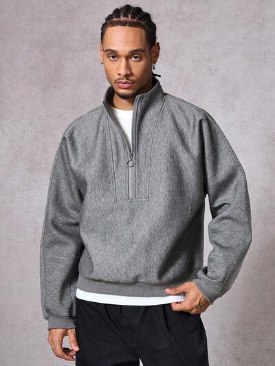 メンズ グレー ハーフジップ フロントプルオーバー スウェットシャツ、丈夫な生地、秋-40%