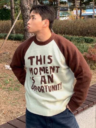 メンズ レター ジャカード クルーネック ラグランスリーブ セーター、マルチカラーオプション、秋冬シーズンに適しています 春服-29%