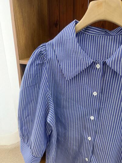 ストライプ柄 ランタンスリーブ 5分袖 ゆったりブラウス レディース 春夏秋-45%