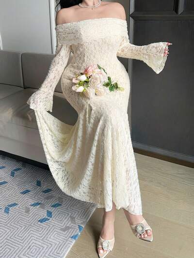 Dazy Plus プラスサイズ レディース エレガントなレース オフショルダー フレア袖 マーメイドドレス、春夏サマードレス-32%