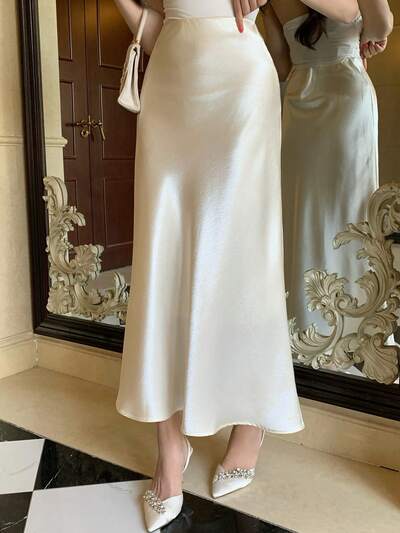 女性用エレガントな無地弾性ウエストスカート、春夏用-37%