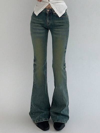 ウォッシュ加工 歪みデザイン フレアデニムジーンズ、秋-35%