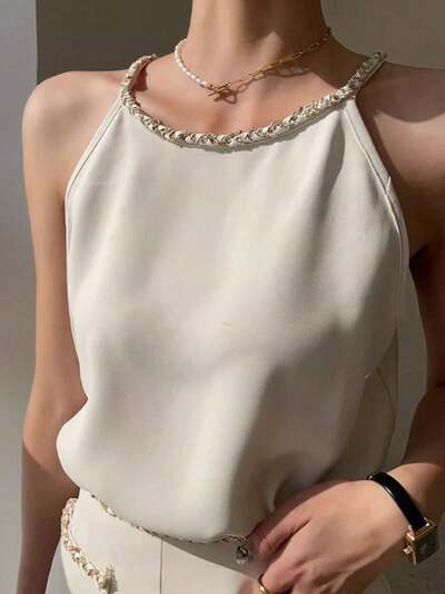 新作夏用レディースエレガントサテンホルターネックタンクトップ、ノースリーブ-36%