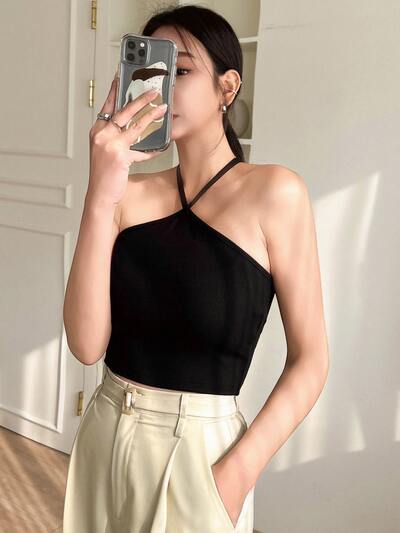 ソリッドクリスクロスバックレスホルタートップ、ノースリーブ-44%