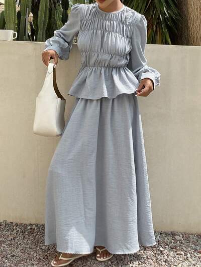 レディース ルーズ カジュアル エレガント プルオーバーシャツ&ロングスカート 2点セット、春夏-30%
