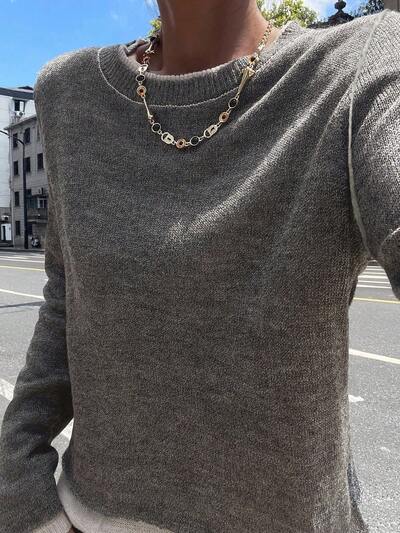 Dazy Plus 無地 ラウンドネック 長袖 クロップド カジュアル プルオーバー セーター、秋冬-55%