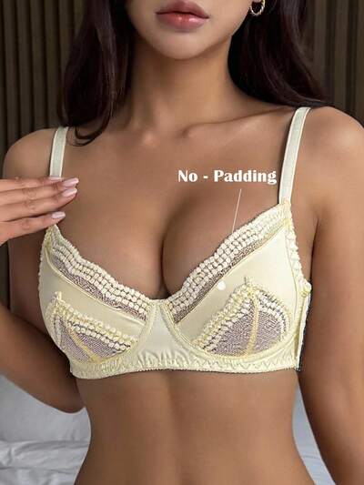 レース切り替え薄手パッド入りブラジャーランジェリー女性用-59%