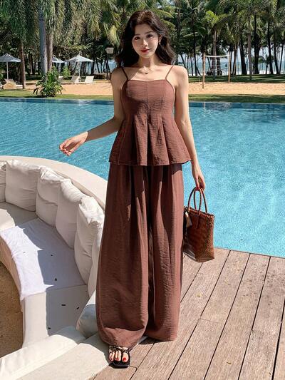 2点セット レディース バカンス カジュアル 無地キャミソール&ワイドパンツ 夏-45%