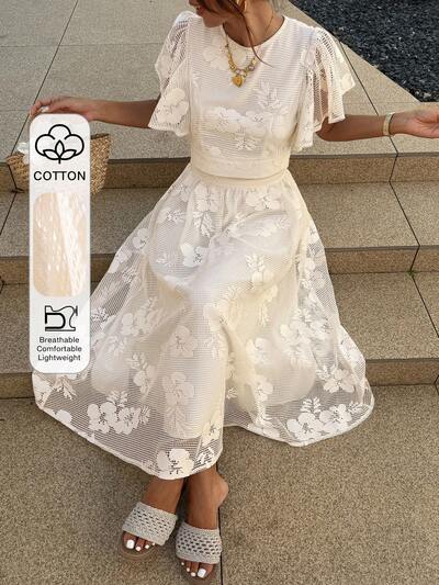 レディース ラウンドネック カバーアップ スパゲッティストラップ マキシスカート、レース テクスチャー ファブリック、エレガントな2ピースセット サマー-59%