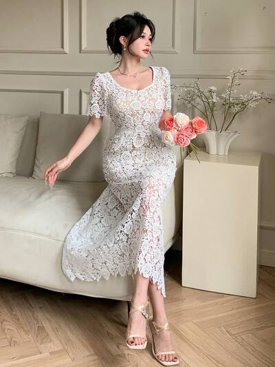 春夏 レース パッチワーク エレガントカジュアル/オフィスウェア セット、ウエストシェイプ トップス&スカート レディース-67%