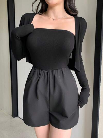 1セット 無地クロップドジャケットとストラップレスロンパース、女性用 2点セット-55%