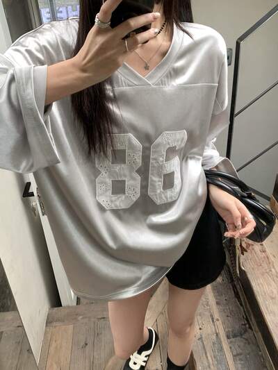 女性用Vネック韓国風レタープリントロングスリーブTシャツ 春服-67%