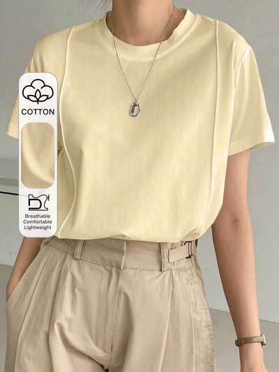 ソリッド シームディテール Tシャツ オールドマネー スタイル ビジネスカジュアル レディース 仕事着-39%