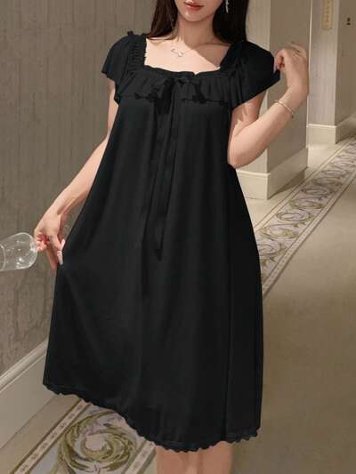ライトウェイト ラッフル メッシュ レディース ナイトガウン ルームウェアドレス-36%