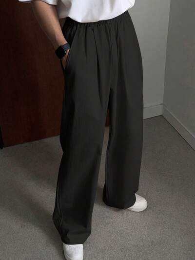 春 無地ブラック ワイドレッグ ルーズ カジュアルパンツ メンズ 秋-36%