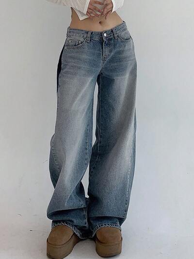 レディース ポケット付き ルーズ ワイドレッグ カジュアル マルチユース ジーンズ フレアパンツ-60%