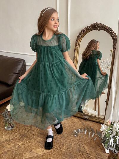 걸 라운드 넥 버블 반팔 물방울 무늬 메시 드레스 여름-45%