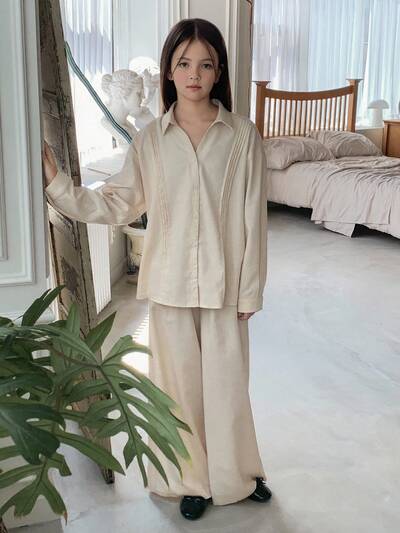 트윈 걸 솔리드 컬러 싱글 브레스트 조끼 및 바지 캐주얼 정장-66%