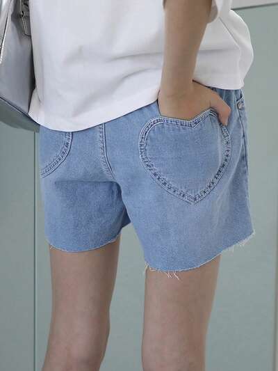 트윈 걸즈 하트 포켓 컬러 블록 캐주얼 데님 반바지, 여름, 학교 개학 의류-44%