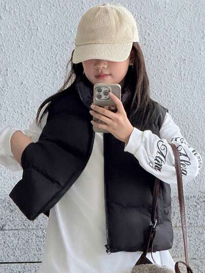 트윈 걸즈 민소매 단색 패딩 조끼, 겨울용 캐주얼-44%