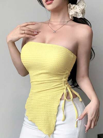 여성 비대칭 플리츠 블라우스, 등교복 외출 상의 튜브 탑-49%