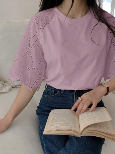 여성 레이스 패치워크 우아한 도시 캐주얼 반팔 티셔츠 여름-39%