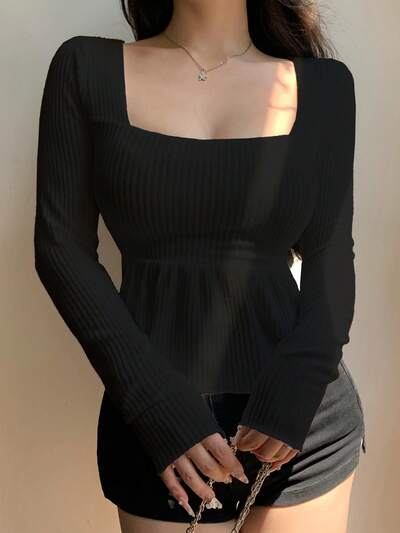 여성용 캐주얼 솔리드 컬러 피팅 긴팔 티셔츠, 봄 & 가을-43%