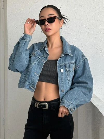 Drop Shoulder Crop Denim Jacket-37%