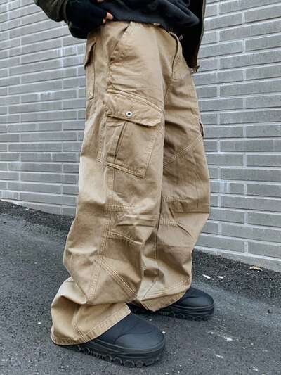 Men's Loose Fit Pocket Solid Color Wide Leg Jeans, Autumn,Back To School Clothes, Grunge-44%