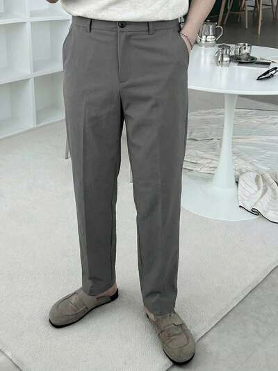 Men's Solid Gray Elastic Fabric Slim Fit Pants, Spring-69%