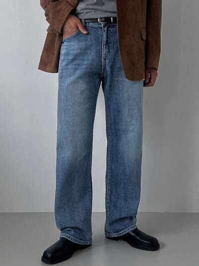 Men's Washed Vintage Blue Denim Jeans, Suitable For Spring And Autumn-70%