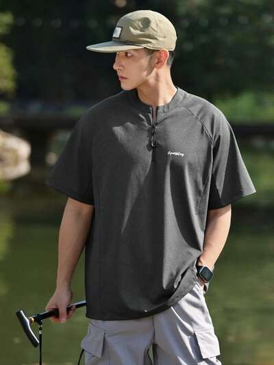 Men's Short Sleeve Raglan Sleeve Half-Placket Outdoor T-Shirt, Summer-42%