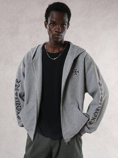 Thick Grey Gothic Letter Embroidered Hooded Sweatshirt Sweatshirt For Men, Autumn/Winter-42%