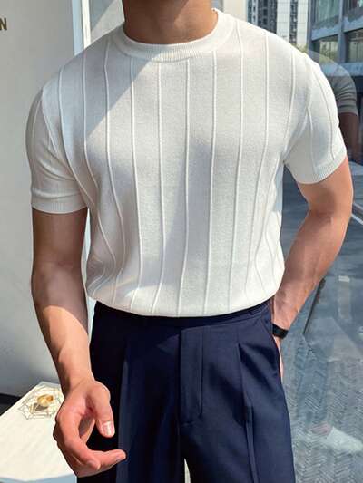 Men Solid Ribbed Knit Top-34%