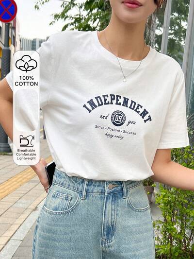 Solid Color Round Neck Short Sleeve T-Shirt For Women-47%