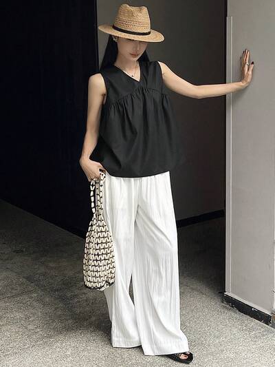 2pcs/Set Women Casual Wrap Vest & Wide Leg Pants Set-70%
