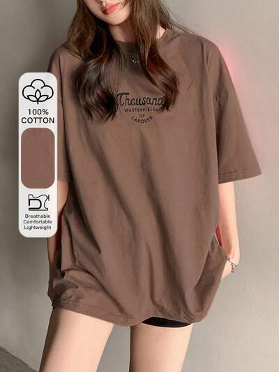Letter Print Drop Shoulder T-Shirt Summer Oversized T-Shirt-40%