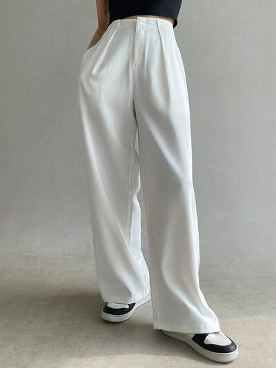 Jednokolorowe, swobodne, vintage'owe, luźne spodnie palazzo z kieszeniami, damskie spodnie garniturowe na wiosnę i lato z szerokimi nogawkami, damskie eleganckie spodnie do stroju biznesowego-37%