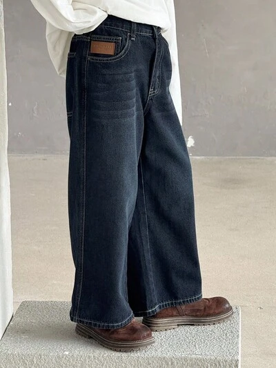 Jeansy dla chłopców z szerokimi nogawkami i kieszeniami, luźne i uniwersalne