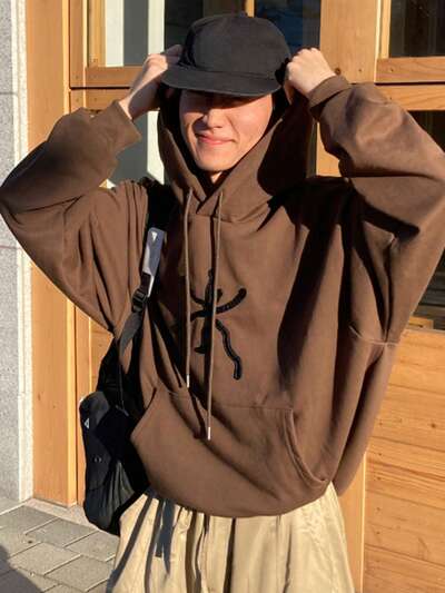 Męska luźna bluza z kapturem z haftem literowym, jesienne ubrania-33%