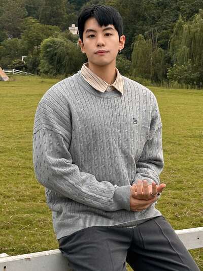 Męski haftowany wzór, lekki sweter, jesień