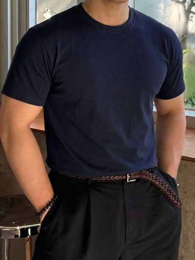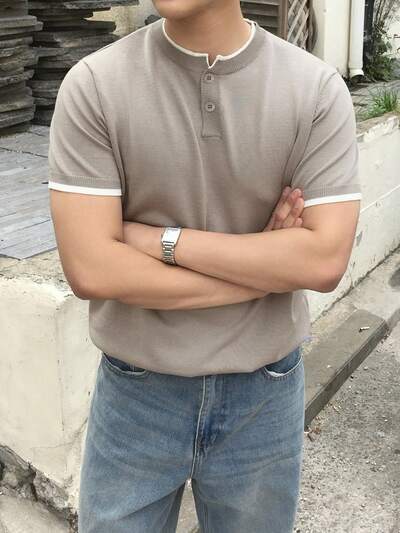 Męski letni top z dzianiny w jednolitym kolorze, strój biznesowy-25%