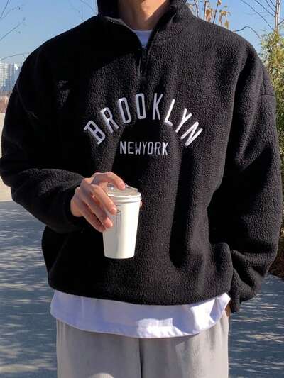 Męska bluza z haftowanymi literami, jesienny zamek błyskawiczny ćwierć-44%