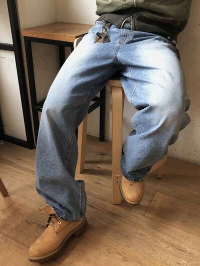 Męskie jeansy w jednolitym, niebieskim kolorze, w stylu vintage, wiosna