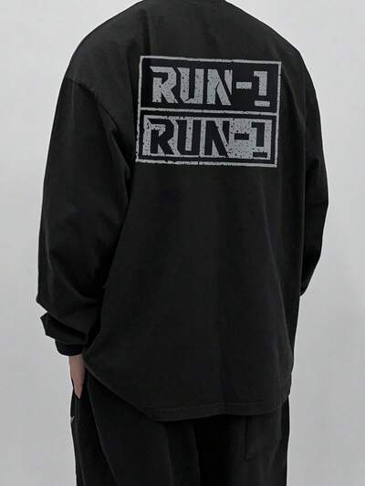 Męska czarna koszulka z nadrukiem w stylu "Distressed Letter", jesień-39%