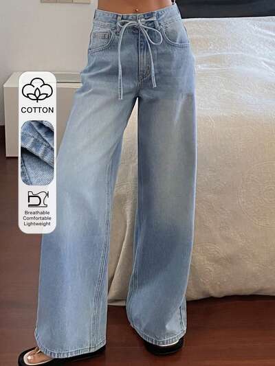 Damskie luźne jeansy z przodu z zapięciem na guziki i wieloma kieszeniami, szerokie nogawki, codzienne, luźne jeansy-25%