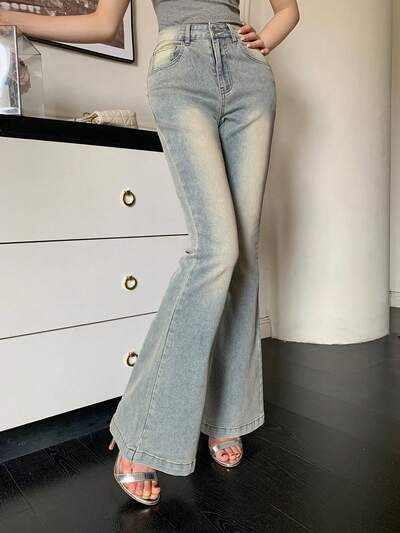 Damskie jeansy dzwony o dopasowanym kroju, wiosna i lato-35%