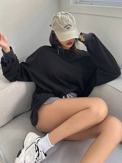 Damska luźna bluzka dżinsowa z okrągłym dekoltem i elastyczną konstrukcją, jesienne ubrania z długim rękawem-25%