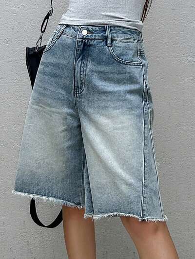 Damskie szorty jeansowe z prostymi nogawkami i jednolitym kolorem-30%